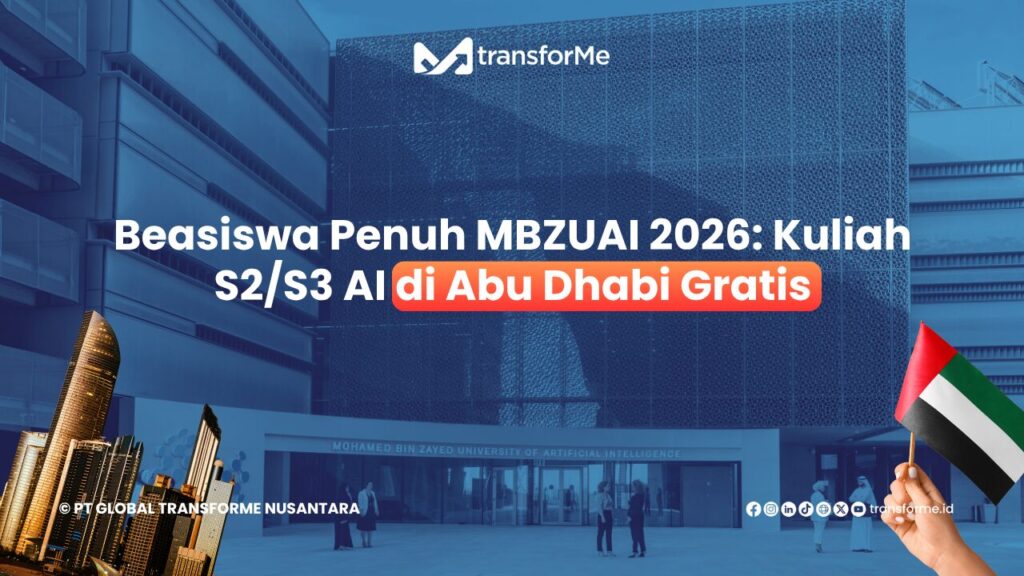 Hi, TransforMers!Mohamed bin Zayed University of Artificial Intelligence (MBZUAI) di Abu Dhabi, Uni Emirat Arab, merupakan salah satu universitas pascasarjana berbasis riset terkemuka di dunia yang fokus pada Kecerdasan Buatan (AI). Bagi kamu, pelajar Indonesia yang bercita-cita menjadi pemimpin di bidang AI, MBZUAI menawarkan peluang emas: Beasiswa Penuh (Full Scholarship) yang komprehensif.   Berikut […]
