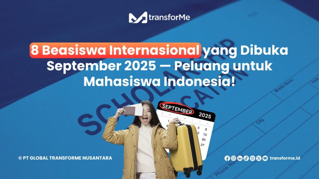 Hi, TransforMers! Sedang mencari beasiswa untuk melanjutkan studi ke luar negeri? September 2025 adalah bulan penting karena sejumlah beasiswa internasional bergengsi mulai membuka pendaftaran. Dari Inggris hingga Afrika Selatan, dari riset doktoral hingga program magister, peluang ini terbuka lebar untuk mahasiswa dan peneliti asal Indonesia. Artikel ini akan merangkum 6 beasiswa yang bisa kamu […]
