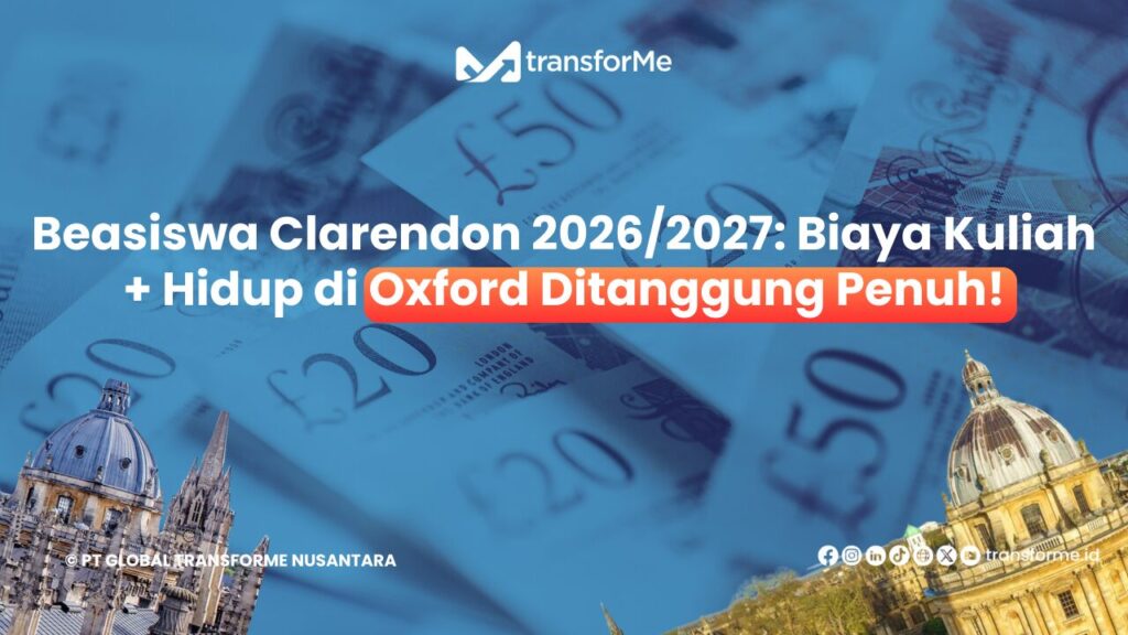 Hi, TransforMers! Bagi kamu yang ingin melanjutkan studi pascasarjana (Magister/DPhil) di Universitas Oxford, ini adalah informasi terkini yang wajib diketahui sebelum mendaftar Beasiswa Clarendon (Clarendon Scholarship).   🎓 Apa itu Beasiswa Clarendon? Beasiswa Clarendon (Clarendon Fund) adalah beasiswa penuh (fully funded) di Oxford untuk mahasiswa pascasarjana dengan prestasi akademik sangat tinggi dan potensi penelitian […]